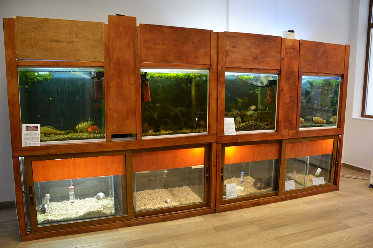 Expoziția „Diversitatea lumii vii – Regnul animal” sunt prezentate animale de la cele mai simple (meduze, corali), melci, scoici, crustacee, insecte, stele de mare, reptile, păsări (Vultur negru, pasărea Emu, colibri) și mamifere.